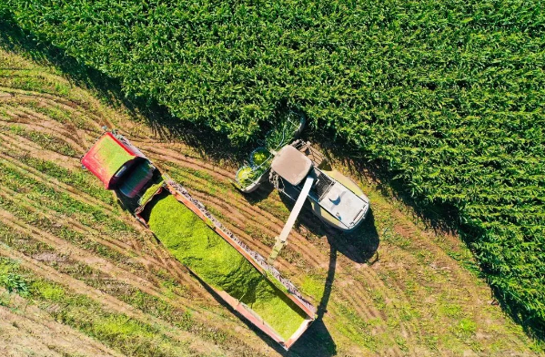 在位于宁夏中宁的渠口农场万亩青贮玉米单产提升示范区,大型玉米青贮收割机正穿梭在茫茫的“青纱帐”里交替作业,一排排玉米被快速整齐切割、粉碎,随后被抛入与收割机并肩前进的卡车车厢内。再经过卡车的交替转运后,青贮将直达各个牧场进行储存。该农场一天可收割青贮7000吨,预计收割青贮总量为7万吨,于9月15日前完成收割工作。1亩地青贮,可供一头奶牛吃6个月。